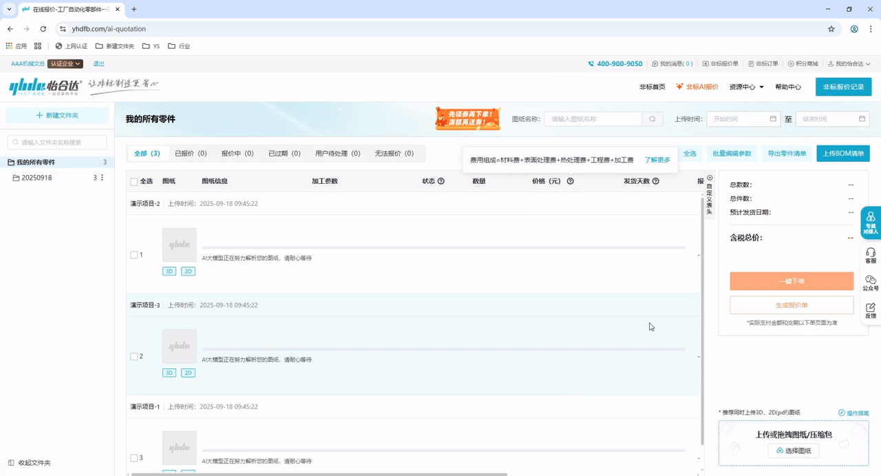 3、等待AI解析图纸并完成报价