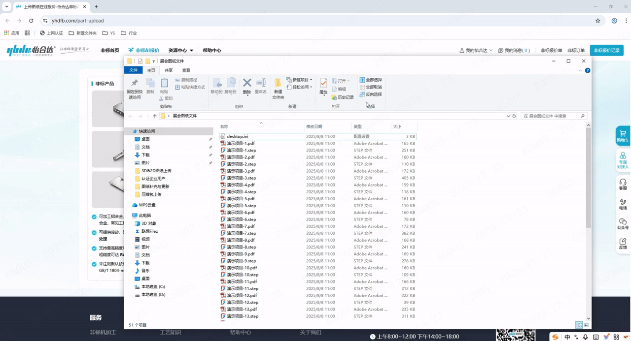 3、或将需要上传零件的3D和2D图纸(名称保持一致)选中,直接拖拽至空白页面,即可完成上传