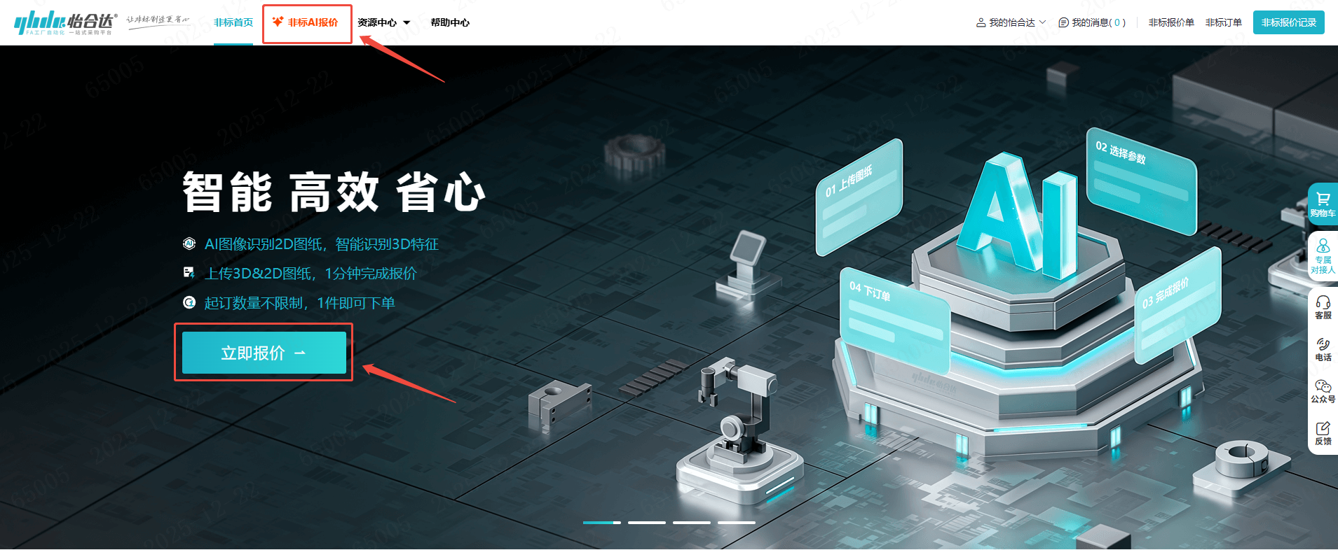 1、点击“立即报价”或“非标AI报价”