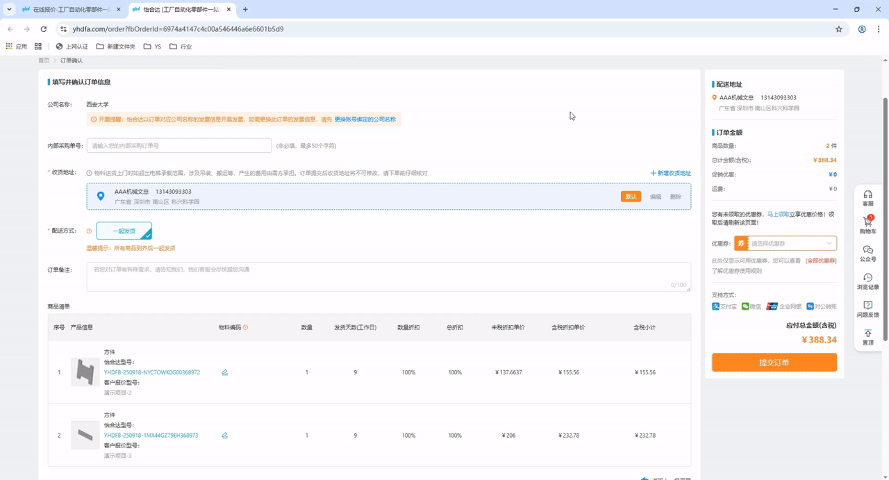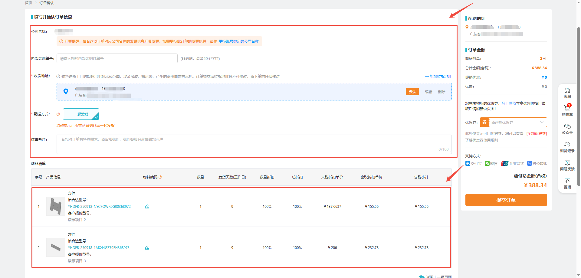 3、确认无误点击“提交订单”,选择支付方式完成付款